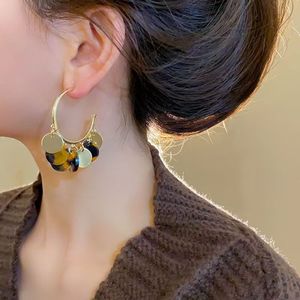 新款咖色C形圆片豹纹耳圈耳环女轻奢高级感复古简约时尚百搭耳饰