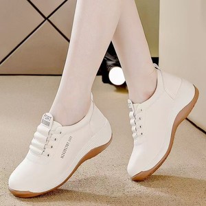 坡跟小白鞋女2025秋季新款软皮通勤舒适软底运动中年妈妈健步鞋女