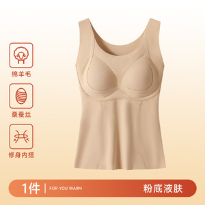 无痕秋冬保暖背心女带胸垫免穿文胸羊毛蚕丝加厚修身内搭打底上衣