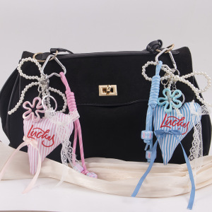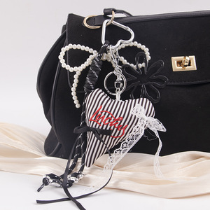 跨境蕾丝飘带蝴蝶结爱心字母布艺miu系包包挂件甜美少女手机挂饰