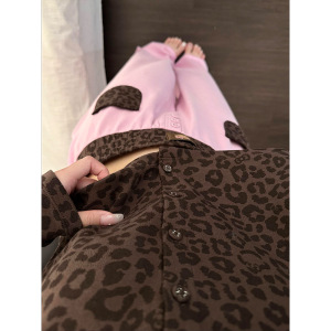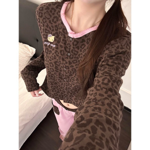 美式辣妹豹纹黑皮Kitty印花睡衣女款2025早秋新款家居服套装外穿