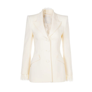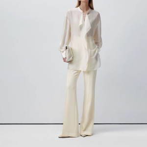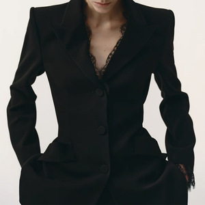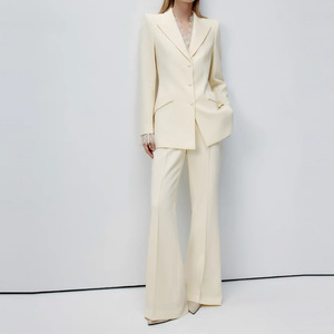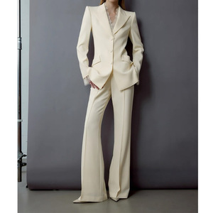 现货厂家批发 2025新款纯色 睫毛蕾丝收腰西装 立骨线喇叭裤套装