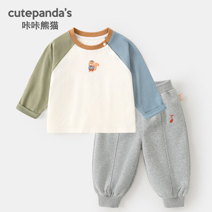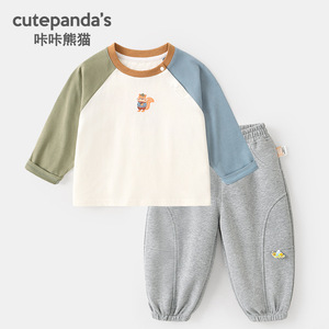 咔咔熊猫儿童套装男童秋装女童秋季休闲长袖长裤婴儿春秋衣服童装