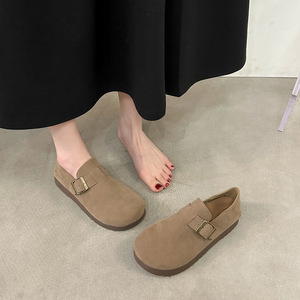 勃肯鞋女单鞋春季2025新款软平底一脚蹬乐福鞋两穿时尚博肯豆豆鞋