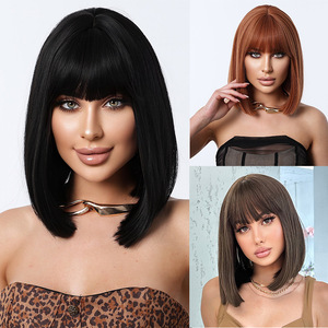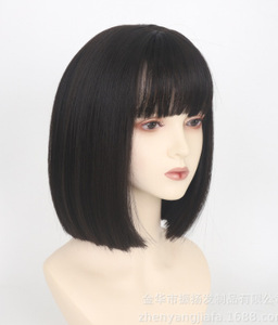 欧美新款齐刘海黑色短发波波头时尚透气女士多色可选假发全头套
