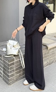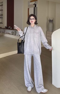 韩版套装2025新款法式穿搭秋季秋装连帽上衣裤子阔腿裤两件套秋冬