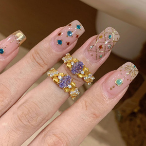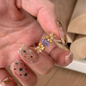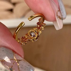 vintage中古紫荆花满天星轻奢高级感宫廷风开口戒指环复古指环