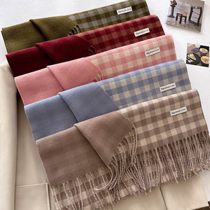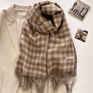 秋冬新款仿羊绒格子围巾女韩系 ins 风加厚保暖围脖百搭流苏披肩