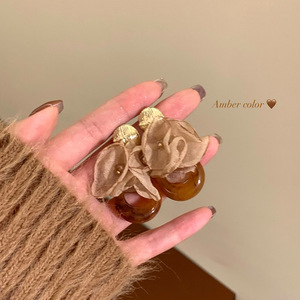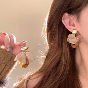 复古焦糖虎眼石花瓣流苏耳环女高级感气质轻奢小众耳钉独特耳饰