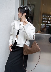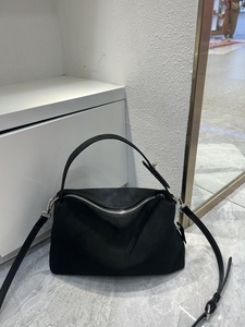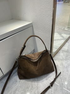 高级感磨砂真皮手提饭盒包包女新款秋冬麂皮绒单肩斜跨托特包包潮