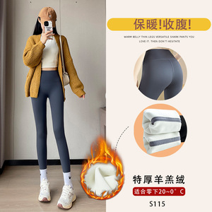 加绒加厚鲨鱼裤女秋冬季棉裤外穿高腰收腹提臀紧身弹力黑色打底裤