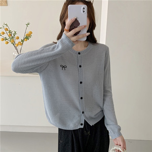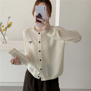 秋季镂空薄款开衫外套针织毛衣女2025新款短款上衣韩系早秋穿搭
