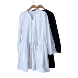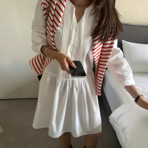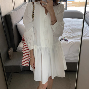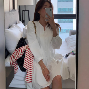 韩国ins2025秋装新品韩版简约气质系带压褶拼接长袖单排扣连衣裙