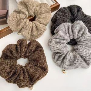 美拉德色系针织毛线大肠圈爱心吊坠发圈头绳新款皮筋简约发绳发饰