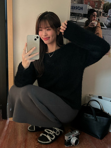 柠檬绿茶秋冬韩系新款时髦甜美软糯毛茸茸仿貂绒百搭针织毛衣