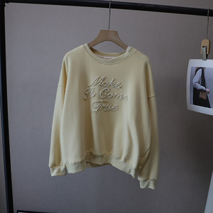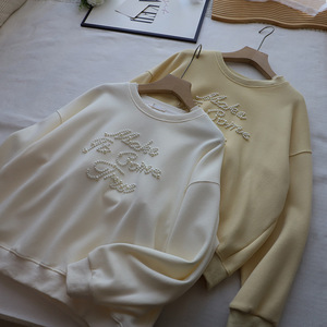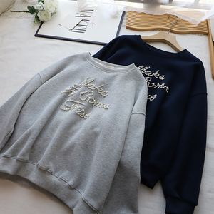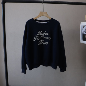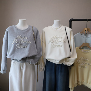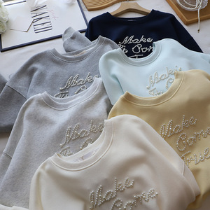 [比正]2025秋冬新款韩版时尚字母钉珠宽松大码百搭套头卫衣女5004