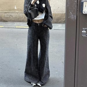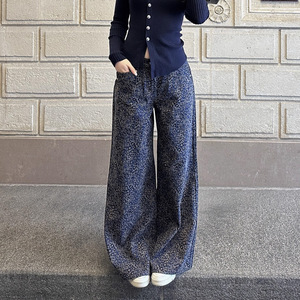 复古街头 低调豹纹直筒牛仔裤2025秋季新品美式街潮高街豹纹宽松