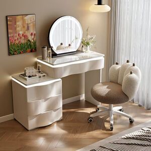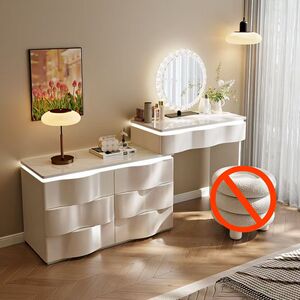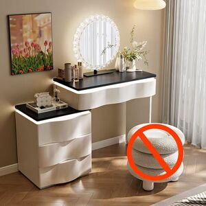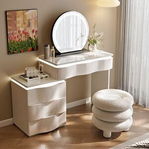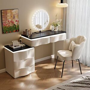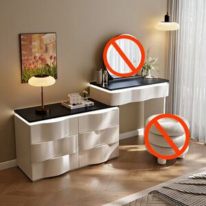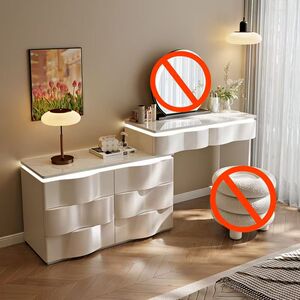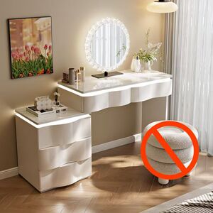 【白岩板面】三斗柜80桌+柜+半圆镜--无凳