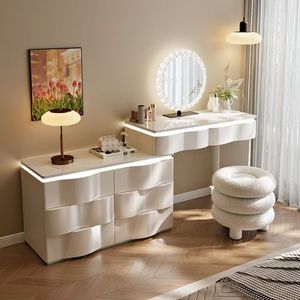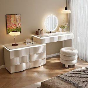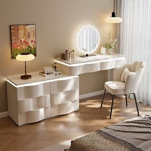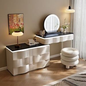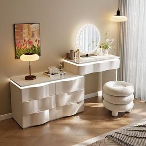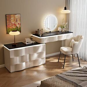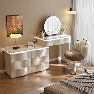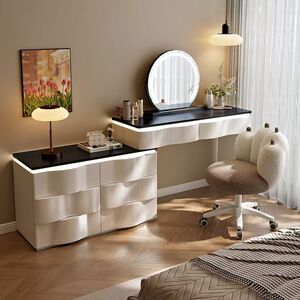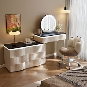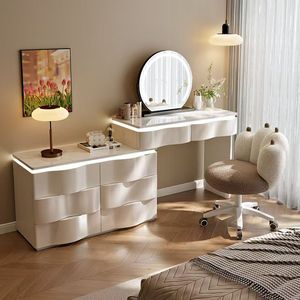 新款简约现代轻奢卧室小户型梳妆台床头收纳柜奶油转角化妆桌书桌