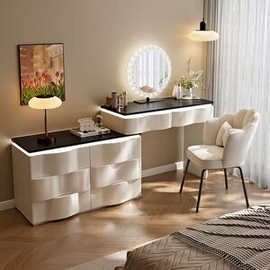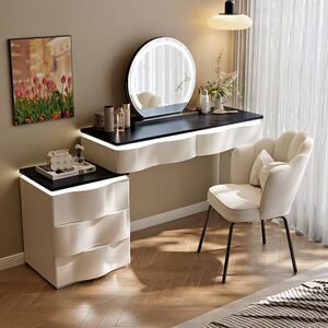 【白岩板面】六斗柜120桌+柜+半圆镜+白黑花瓣椅