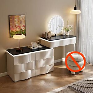 【白岩板面】六斗柜100桌+柜+半圆镜--无凳