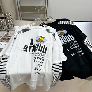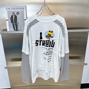 早秋新款2025新款时尚潮流设计感休闲百搭插肩袖长袖圆领假两件潮