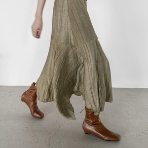 焦糖色方头短靴女秋冬靴子短筒后拉链女靴时尚个性百搭真皮瘦瘦靴