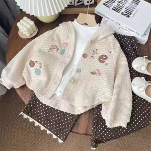 宝宝春秋针织开衫外套洋气女宝可爱穿搭米杏色偏白现货简约