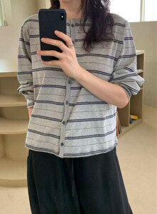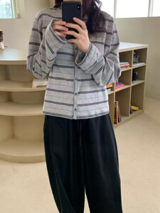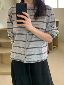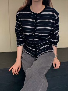【预售】韩国东大门one taste2025秋新款时尚百搭洋气条纹开衫