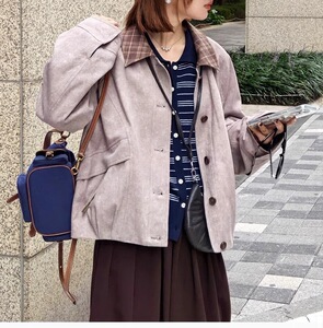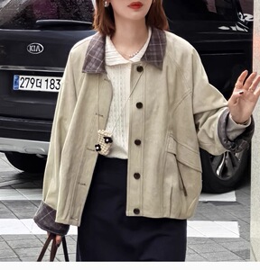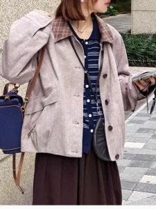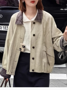 "帕斯托信箱"巴恩风格纹撞色领秋季工装夹克短外套