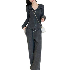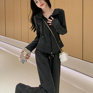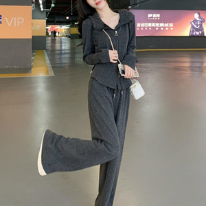 秋冬半拉链运动套装深灰色高级感气质时尚减龄休闲修身连帽两件套