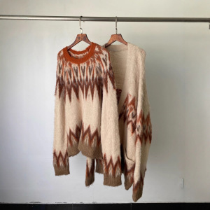 6891费尔岛毛衣25年秋冬新款马海毛提花毛衣圆领宽松套头针织衫女