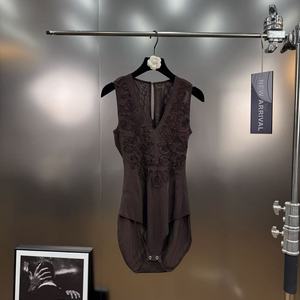 深V领拼接布波纹图连体背心直腿裤气质通勤套装