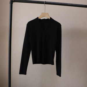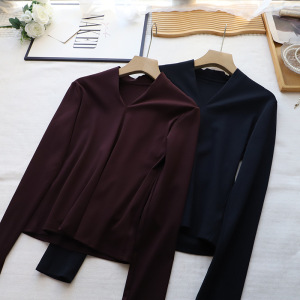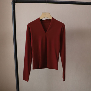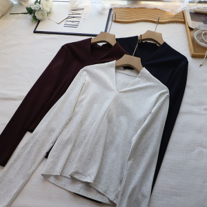 [比正]2025秋冬新款韩版高级感气质百搭V领显瘦长袖打底衫女5126
