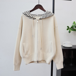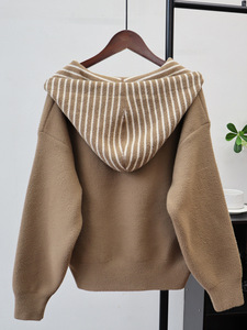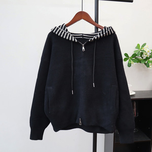 2025秋冬新款连帽双拉链针织双面呢开衫韩版宽松休闲毛衣外套女潮