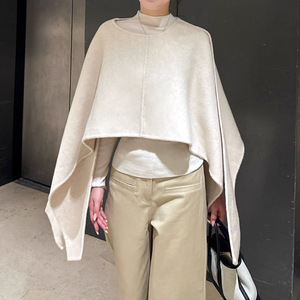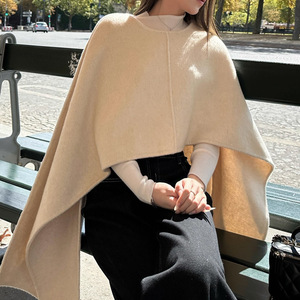 时髦姐姐 风格款天丝双面呢斗篷时尚女士呢子百搭夹克披风
