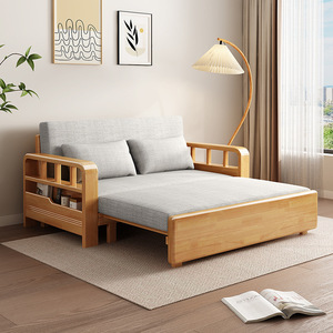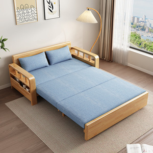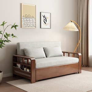 实木沙发床折叠两用简约小户型客厅伸缩沙发网红新款家用多功能床