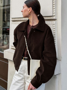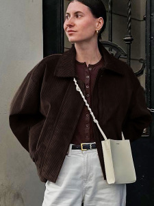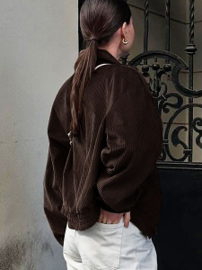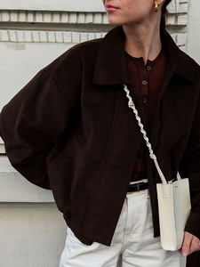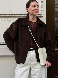 2025秋冬新款港风复古棕色宽松夹克女设计感气质时尚外套跨境通勤