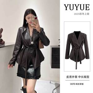 2025秋冬季新复古时髦仿皮皮衣外套女宽松廓形中长腰显瘦
