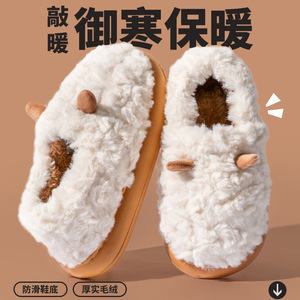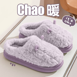 冬季情侣包跟棉拖鞋女新款成对出行防滑保暖可爱小耳朵毛毛棉鞋女