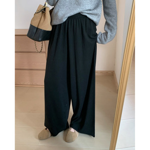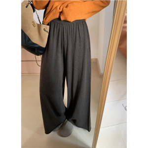 秋冬新款韩系羊绒卷边慵懒拖地长裤女宽松百搭休闲垂感针织阔腿裤