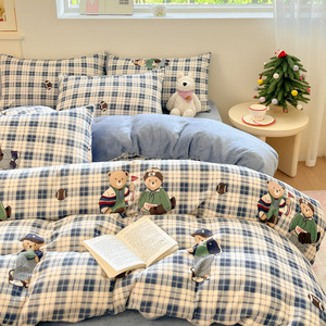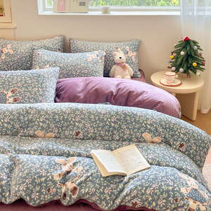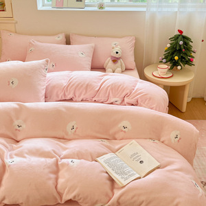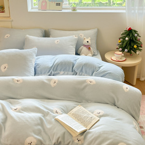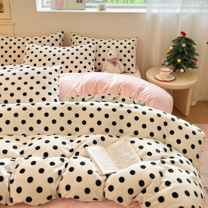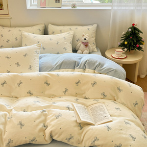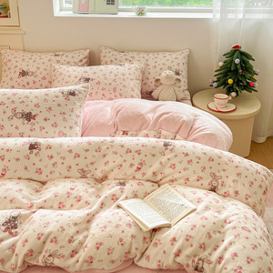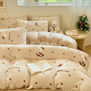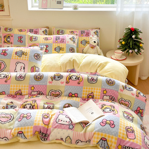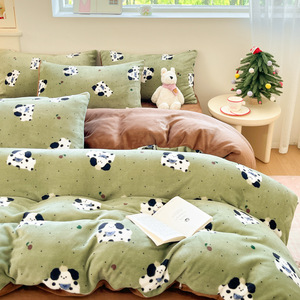 秋冬新款加厚卡通风牛奶绒四件套双面绒保暖宿舍家用单被套三件套