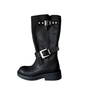 复古英伦风皮带扣中筒靴女2025新款显瘦粗跟圆头百搭马丁靴骑士靴