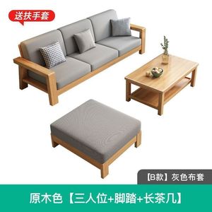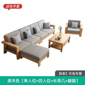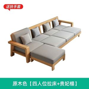 实木沙发组合北欧客厅现代简约沙发床两用小户型布艺转角复古中式