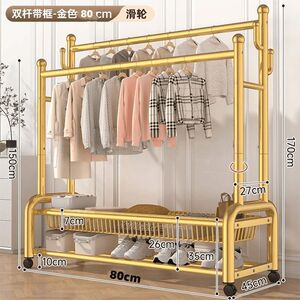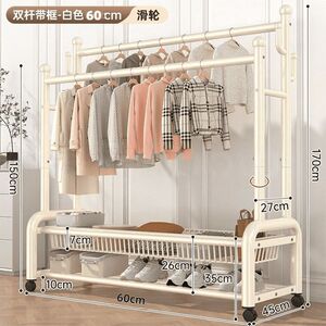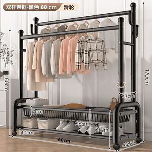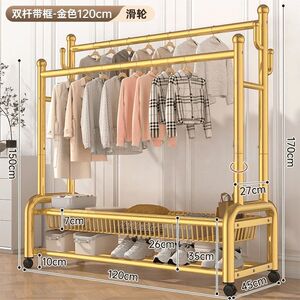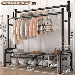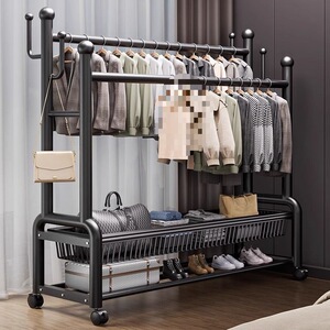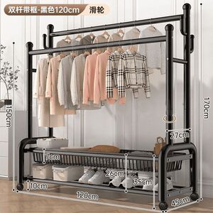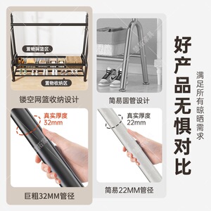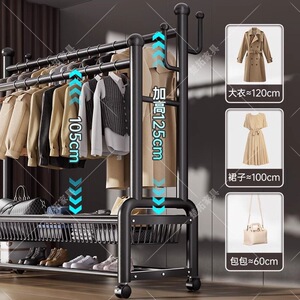 挂衣架室内家用衣服架子落地卧室加厚晾衣架落地式简易双杆衣帽架