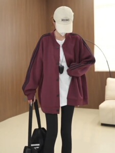 美式撞色三条杠棒球服外套女2025秋季新款宽松百搭时尚休闲上衣潮