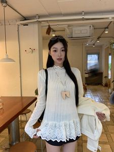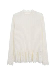 上衣设计感小众女装蕾丝花边长袖套头T恤秋季小众别致内搭打底衫