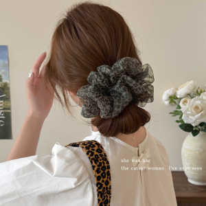 韩系气质豹纹网纱大肠发圈女后脑勺扎头发绳低马尾头绳橡皮筋发饰