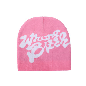 跨境新款朋克针织毛线帽欧美潮流字母提花帽秋冬防寒保暖冷帽