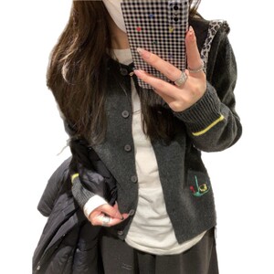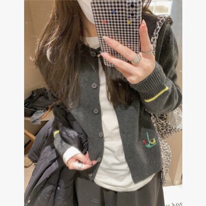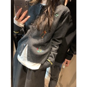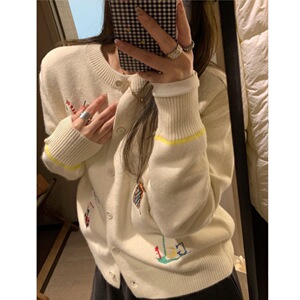 韩系2025年秋冬新款运动刺绣长袖圆领减龄针织开衫慵懒风女式毛衣